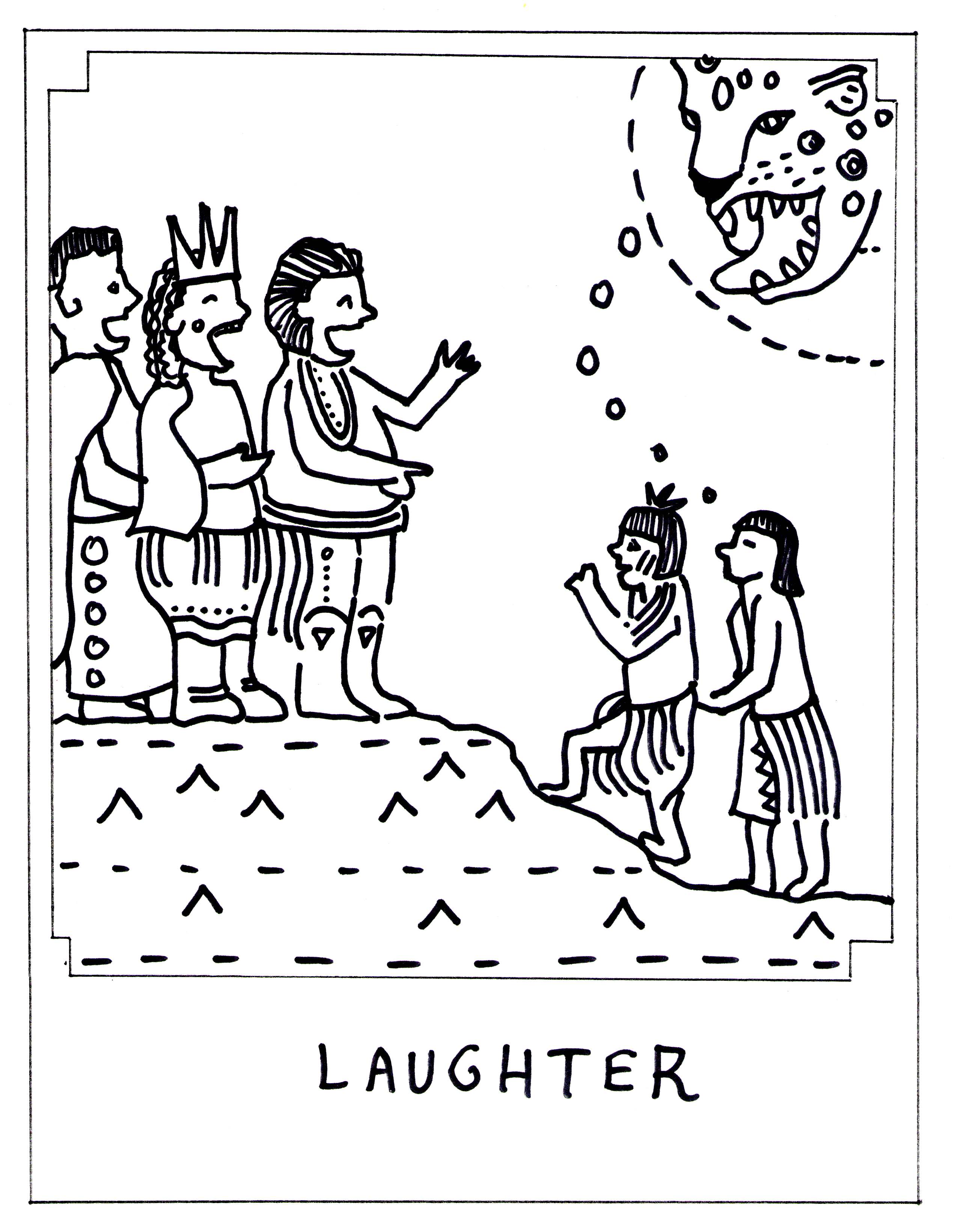 Once upon a time a couple of hunters were cooking some deer meat by a fire. A giant jaguar came down from the clouds and said, ” I have a gift for you.”