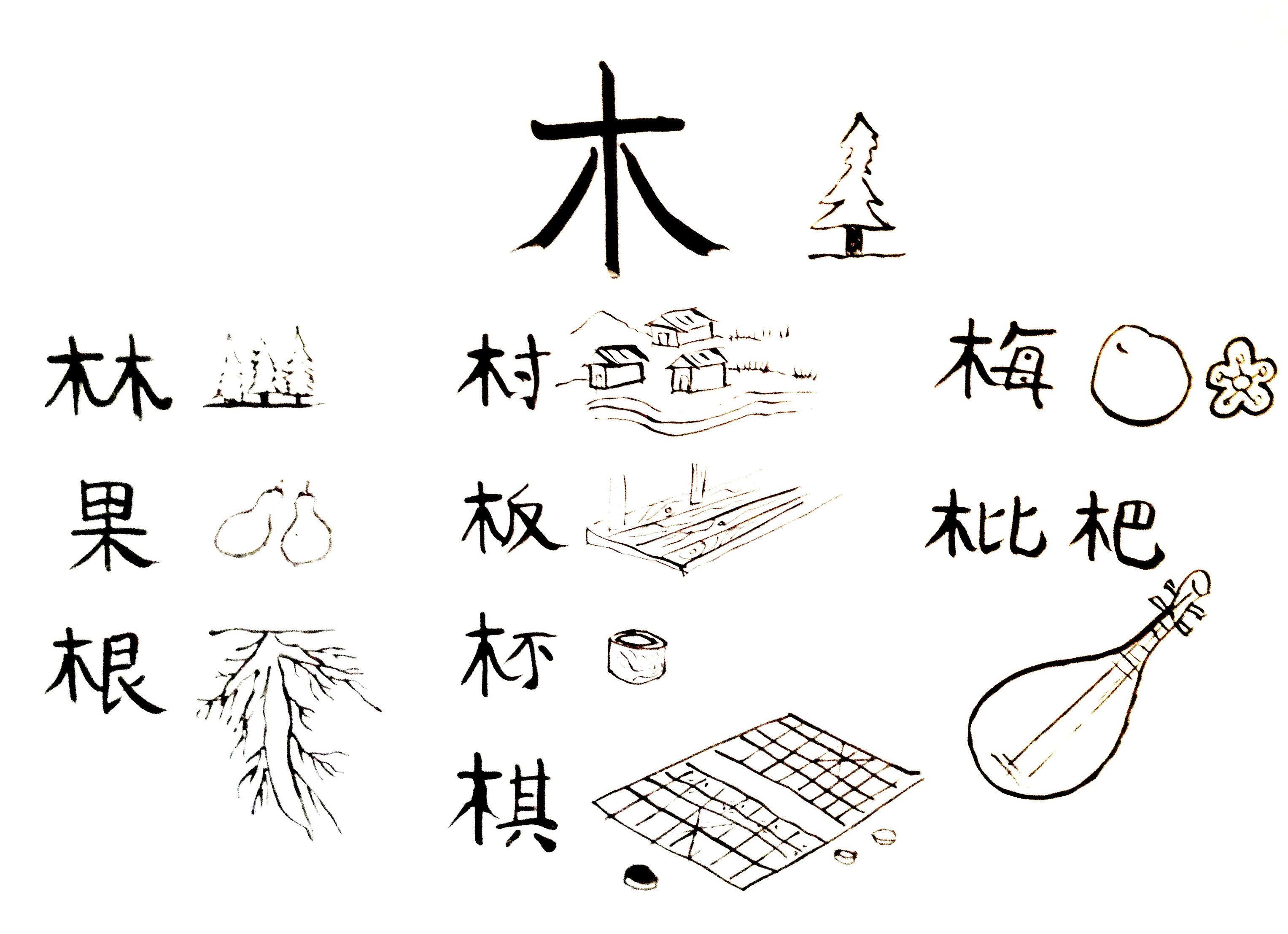 All fruit trees have in common the character for wood, or mu. There are forests, fruits, and roots. Villages, boards, cups, and chess. Plum. Loquat – fruit or music instrument? Either way, a tea made of its leaf is a great remedy for cough. Just remember to flick off the little hairs on the underside.