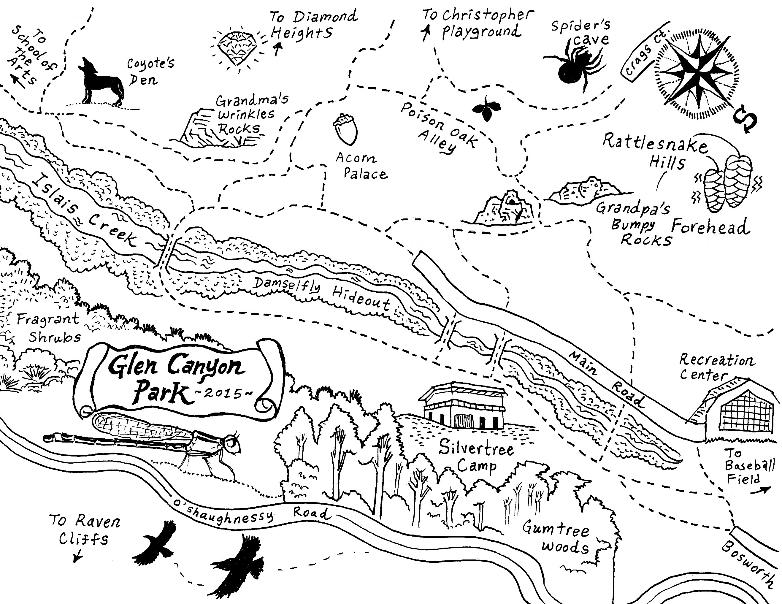 There is an epic canyon in the middle of San Francisco.  One of the last free running trickles or creeks, Islais Creek, still charges down from the hills of Mt Davidson out to the bay and Third Street.  Listen for the great horned owls and wander the grasslands blooming with soap root and lupines.  Heres a map and other creatures to look for: