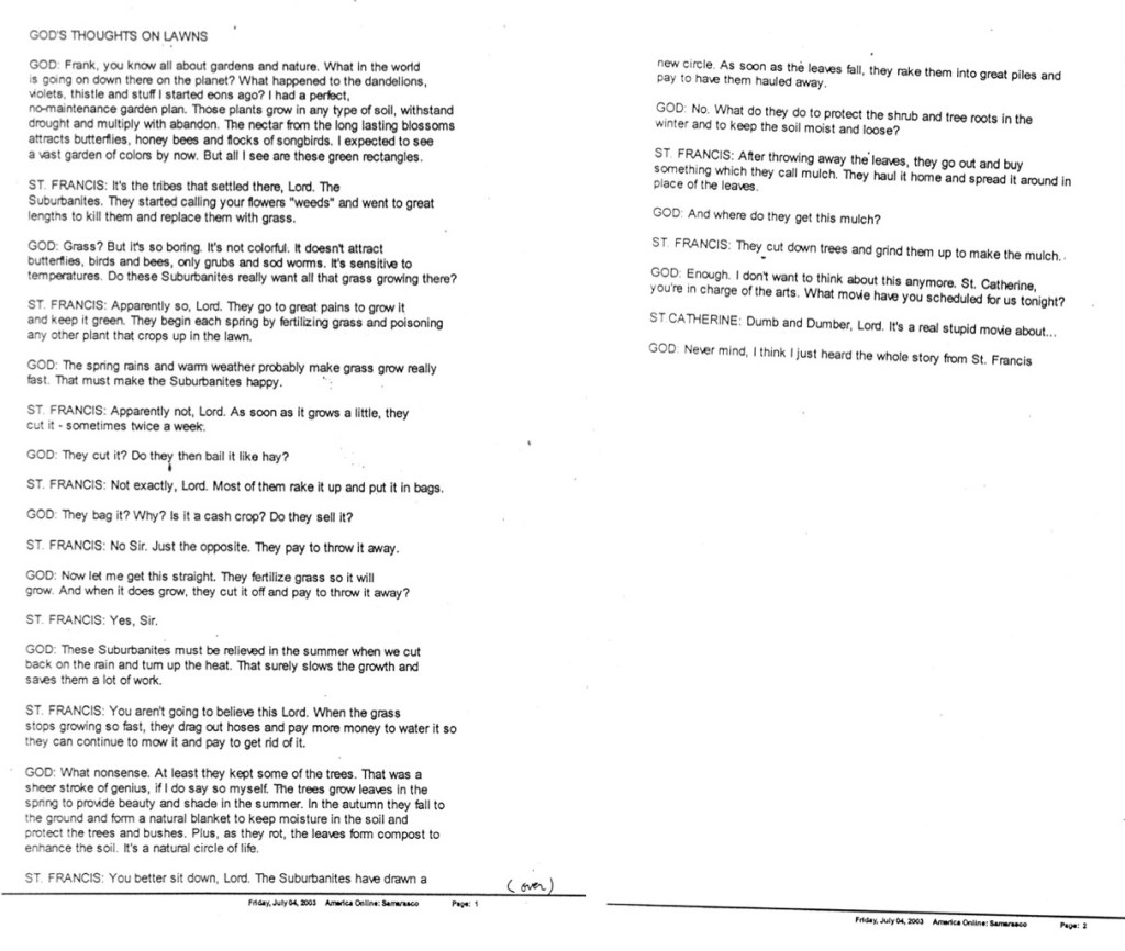 Your instructor Gus Broucaret always gives this funny story out as a handout to the class. Yes he is a gardener who has mowed and hedged all his life; but this story is reflective of his thoughts about the matter.