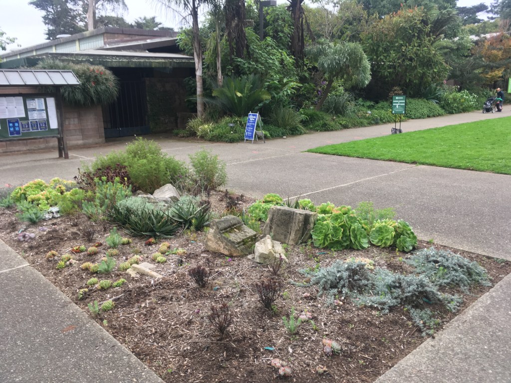 As part of the landscape design class, we visited the San Francisco Botanical Garden to examine the role that water, stone, and plants play as part of the overall design. The gardens feature a diversity of plants from the Mediterranean climates of the world, cloud forests of Central America and Southeast Asia, and temperate zones of mostly Asia, Europe, and North America.