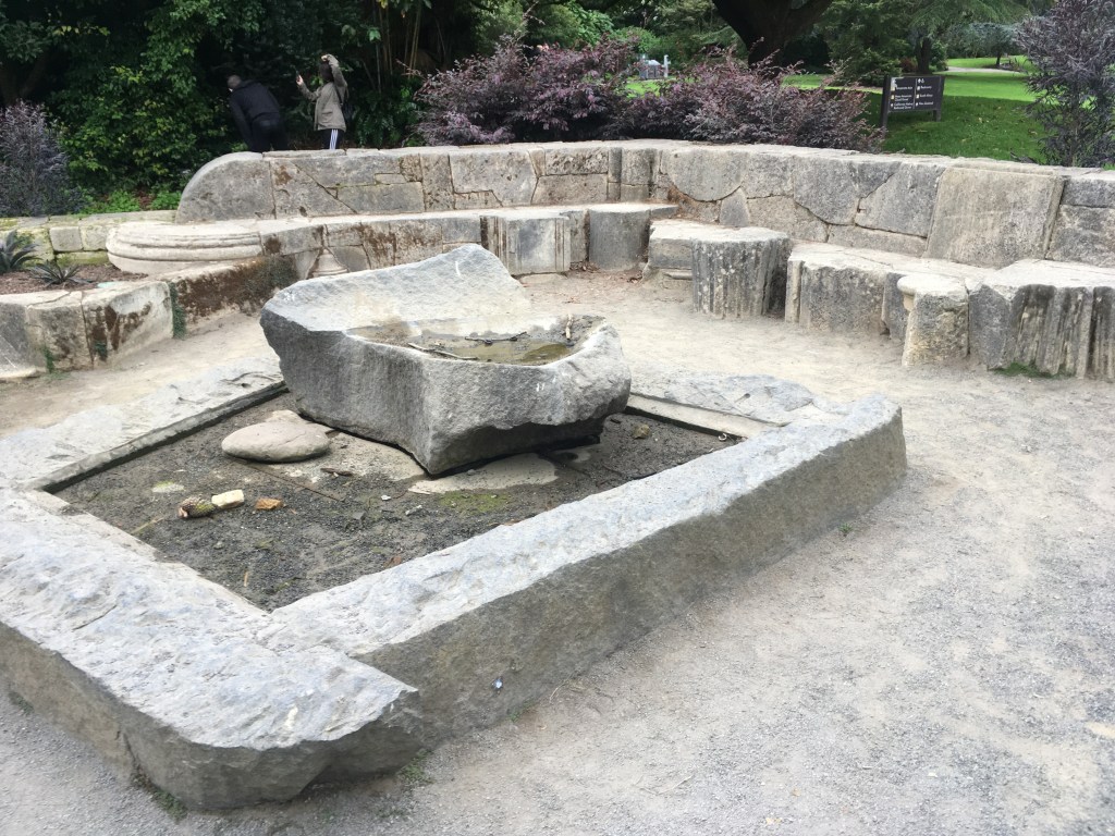At the end of the tour we ended up back at the entrance, by the library courtyard garden, a garden enclosed by the Spanish monastery stones. With, you guessed it, a small fountain in the middle. There is a good history of the stones here: https://www.outsidelands.org/monastery-stones.php