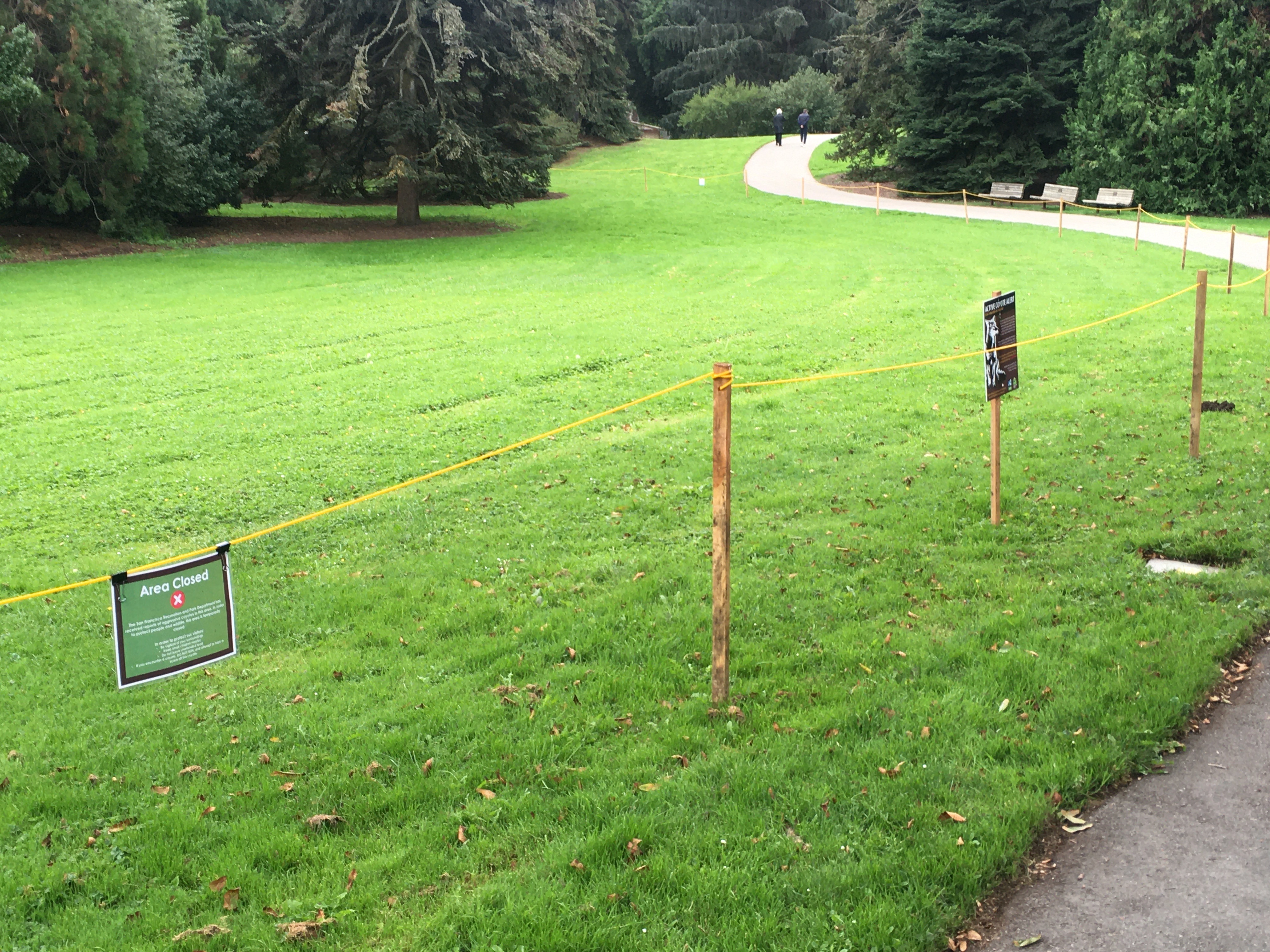 There was more closed area by the Conifer Lawn. Signs explain that a coyote had been sighted and perhaps threatening a garden visitor. This was the area that it was last seen in. What a drag. Between Covid and now the coyote.