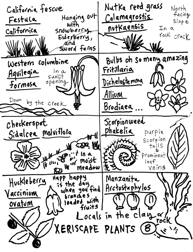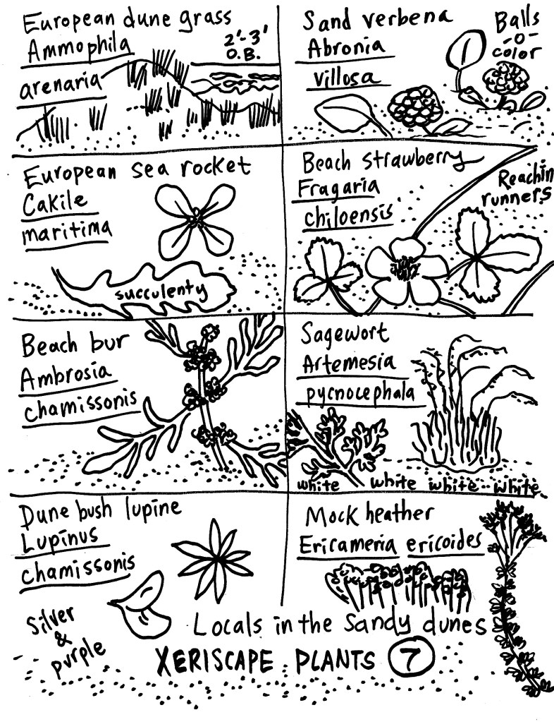 This third set of plants are plants found in the sandy dunes, the clay uplands, and plants useful for raising butterfly larvae. Most are natives, not just California natives, but San Francisco natives. A few are from other places. Some of these we saw on our walkabout to the Ocean Beach dunes off of Judah Street, the rest we will hopefully encounter another day.