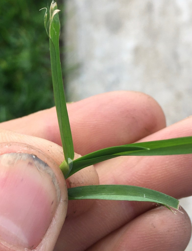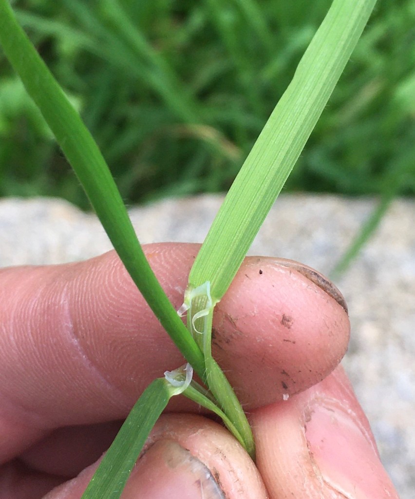 Being an observant plants person, you want to identify the grass. Take a look to see if the emerging leaves come out folded or in a round roll. You can roll it back and forth between your fingers to figure it out. Like this one in the round: