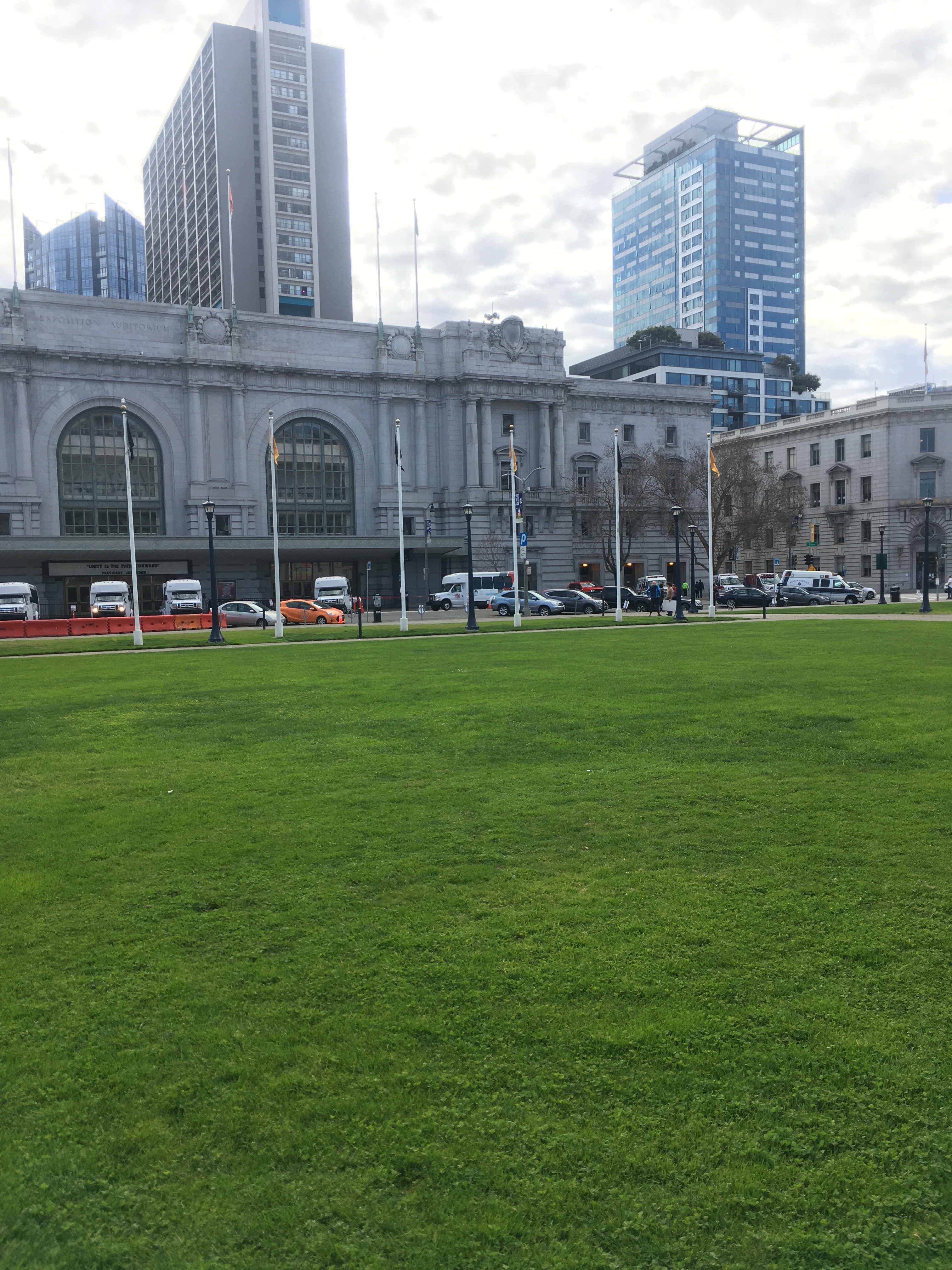 Back in the day, working down at Civic Center, we would mow the lawns on the plaza, and also around City Hall and the main library. This middle section was once a lawn. And before that, a reflecting pool. Now, it is just decomposed granite:
