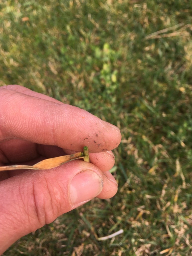 Behind these plant parts is the collar on the back. Sorry dont have any pictures of those here. But they are worthwhile also in narrowing down the name of the grass you are looking at. Sometimes it is the flowers and seeds that will clue you in. The cute lil inflorescences of annual blue grass ( Poa annua) are hard to miss once you keep an eye out for them. They so short that they flower and fruit and drop seeds before the mower can get to them. Plus they are often a bright light green: