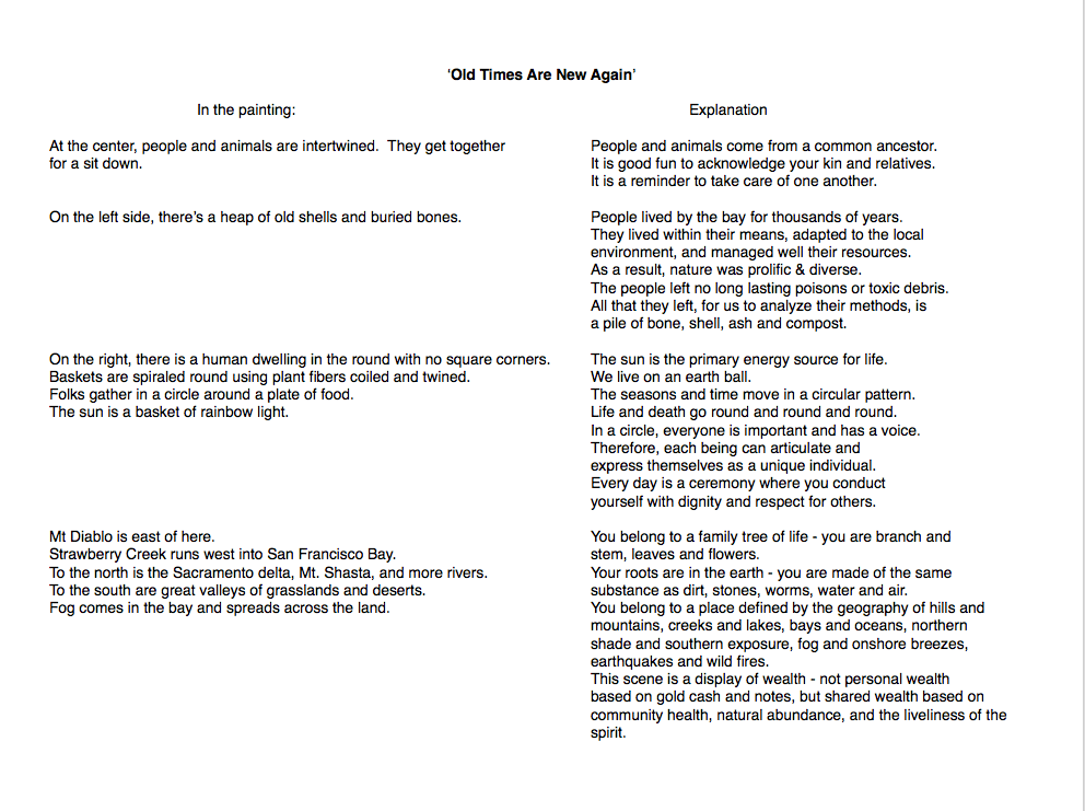 One of the folks there talked about the shell mounds of the native peoples in the east bay, by the cities of Berkeley and Emeryville. The story teller’s name was Chris Walker, and he is a film maker also. I watched a short animation about this project he was working on with a lady named Corinna Gould from the Confederated Village of Lisjan. Here is the link: https://www.youtube.com/watch?v=KYWCqFOxhh8. They want to commemorate, remember, and unite people by turning a shell mound that is a parking lot back into something that will connect people to local nature again. The city government seems to be in favor of the idea. Maybe some cool landscape architects, innovative planners, kick ass contractors, and a whole bunch of native villagers will collaborate and make it happen.
