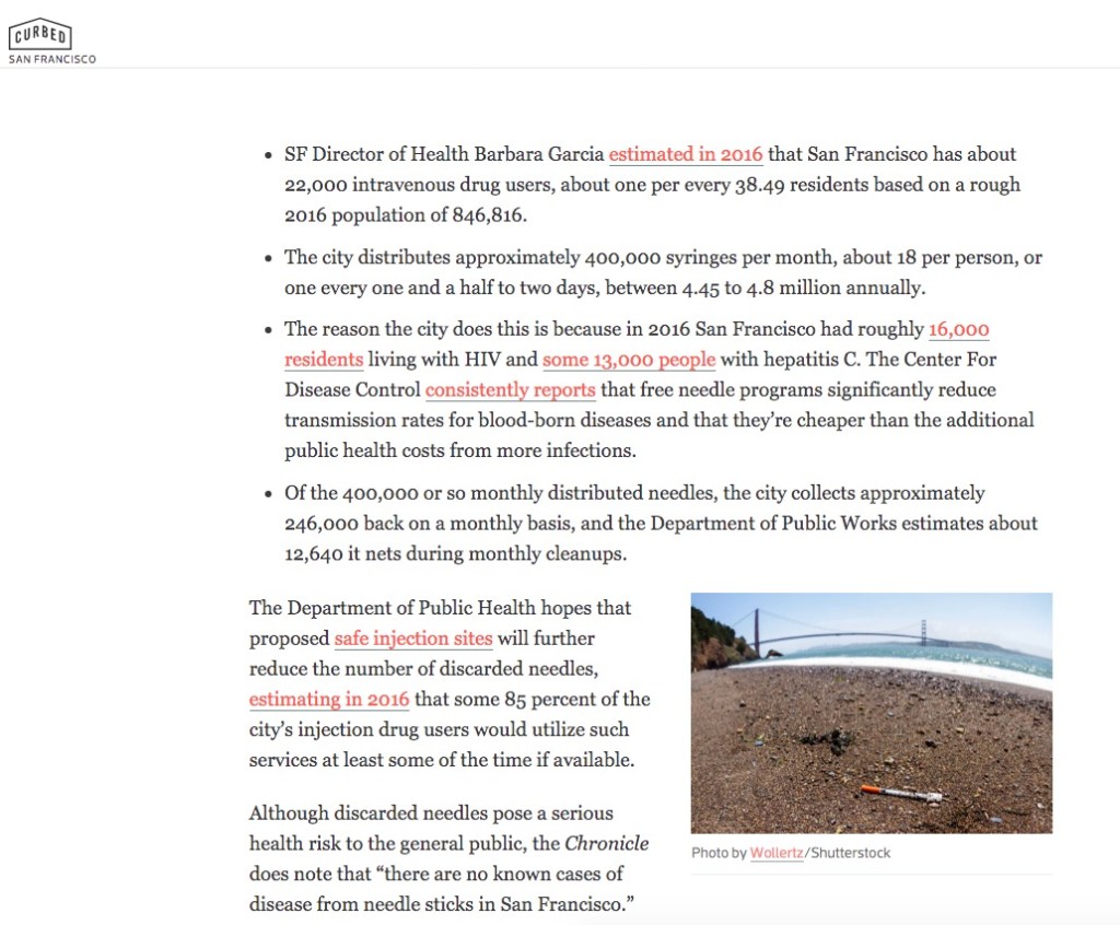 A few years back it is said that our mayor went to Paris, made a deal with a French company, and then had these toilets installed all around town. They are great for spots with abundant tourists and few restroom facilities. You put a quarter in it, and have a peaceful spot for a few moments to do your business. Then walk back out to check the amazing views at Twin Peaks. In some parts of town, however, they are galleries for junkies and hoes to engage in business. Part of the work routine for us downtown was picking up hypodermic needles. Lots of them. Some days the toilet cleaning workers would leave the needles on top of our garbage cans. The workers likely did not carry the red sharps containers, or just forgot. At least they did not throw the needles into the garbage where it would have pierced the plastic bag and leaked out the contents therein. Of course removing the dirty needles from easy public access was first priority at 6:30 am, cause the last thing you want is some kid on a field trip to the museums grabbing a used needle and playing with it. Both my gardener and supervisor before me were stung by needles as they were picking up leafy debris with gloved hands. So the advice now is – do not pick stuff up with your hands! Use a rake, a scoop, a dust pan. If you do get poked, go to the hospital, get checked out. Its usually nothing, but then again, nice to be conservative in such situations.