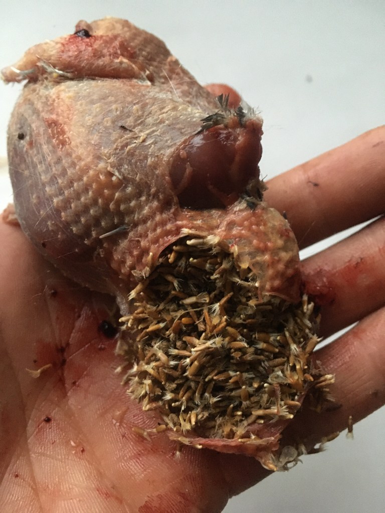 What is in its crop? Well the dove had only one kind of seed it seems, and the crop was loaded! No wonder it was just sitting there and not flying off.