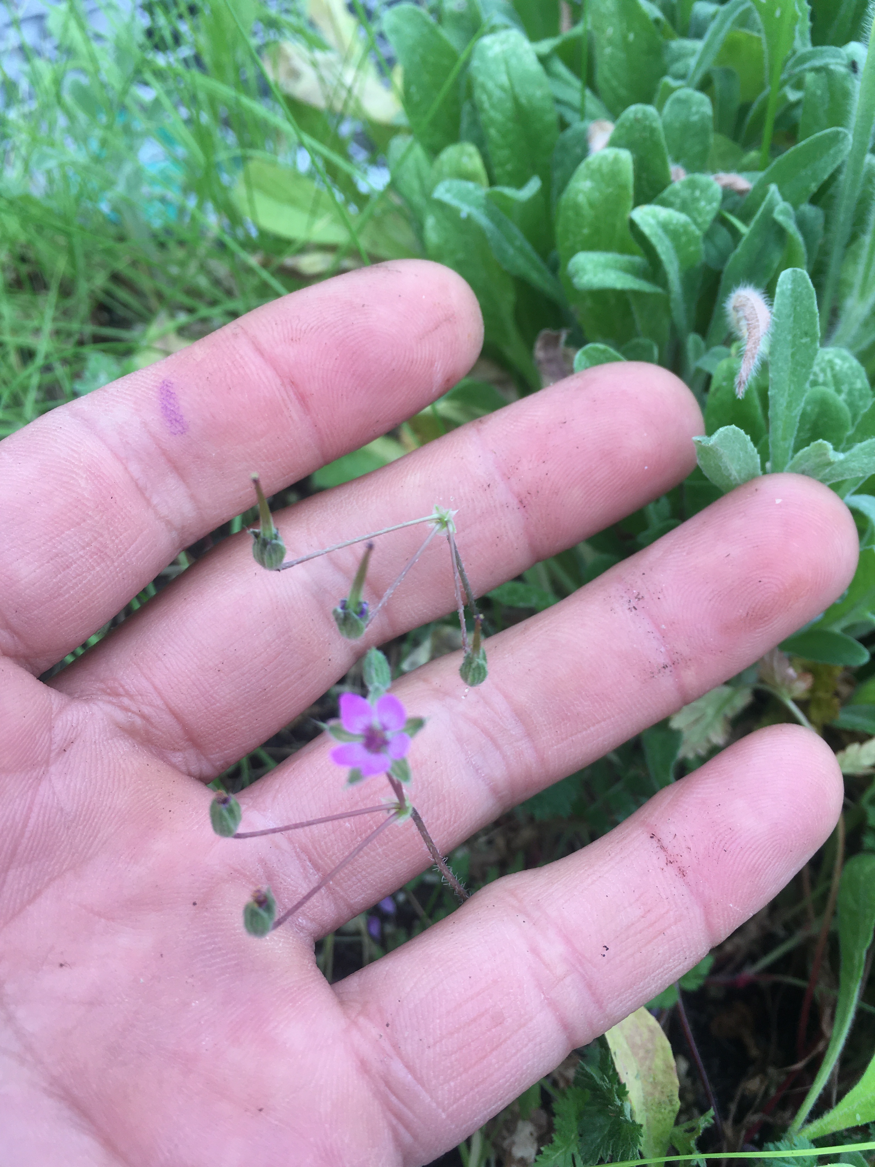 On the quail side it was a lot more sparse and irregular. Yes theres the pink five petaled flower of a geranium family thing with the typical crane’s bill looking fruits. Reddish stems. Lets go with the redstem filaree Erodium cicutarium. That is the plant ol master Bob Patterson of Plant Taxonomy class would say, ‘comes in with the cattle’.