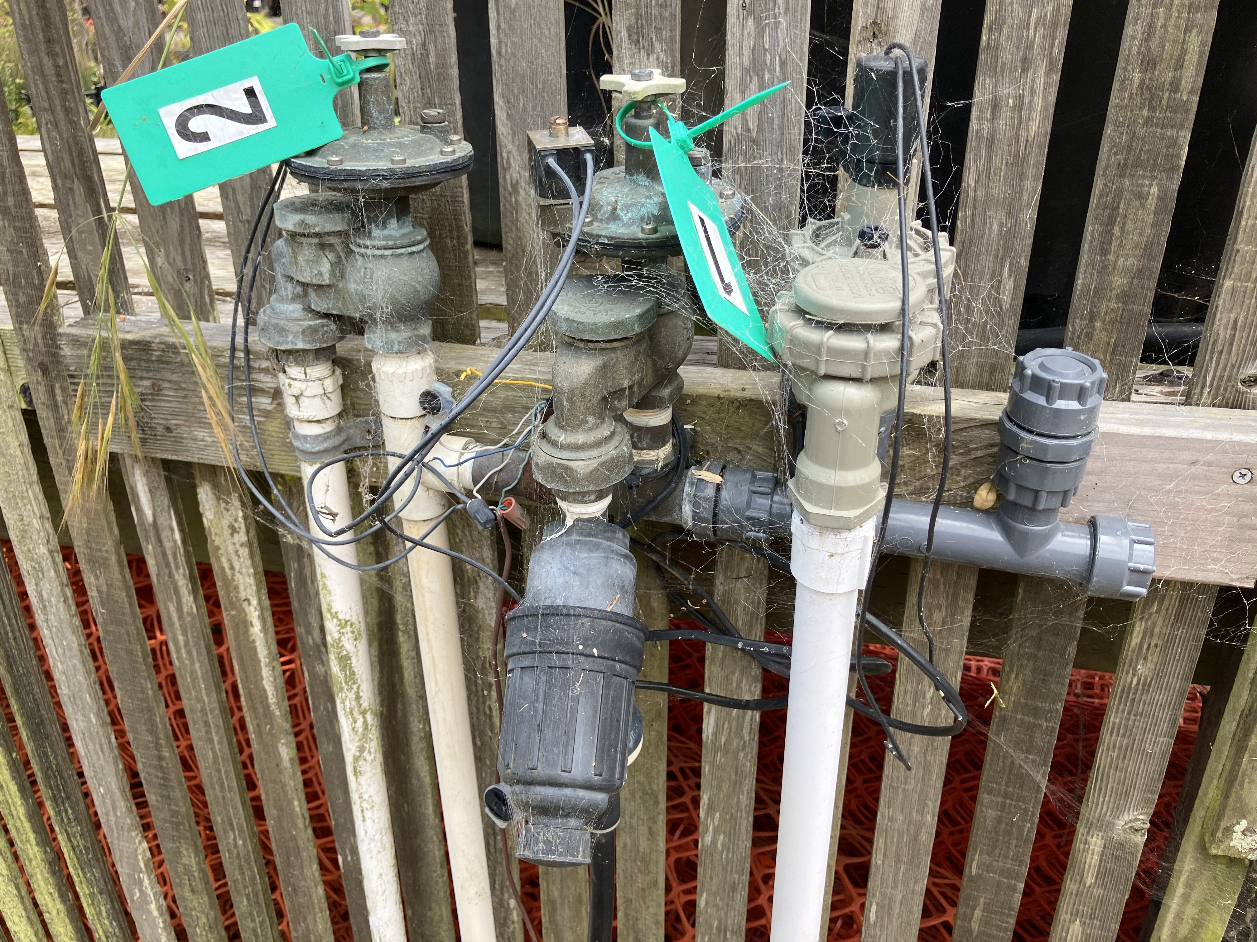 In the irrigation system you may also see a Flush Valve symbol. In drip irrigation that is just a cap you can unscrew at the end of the system and flush water through it time to time as part of maintenance chores. That way it cleans out any bits of clogs and things.