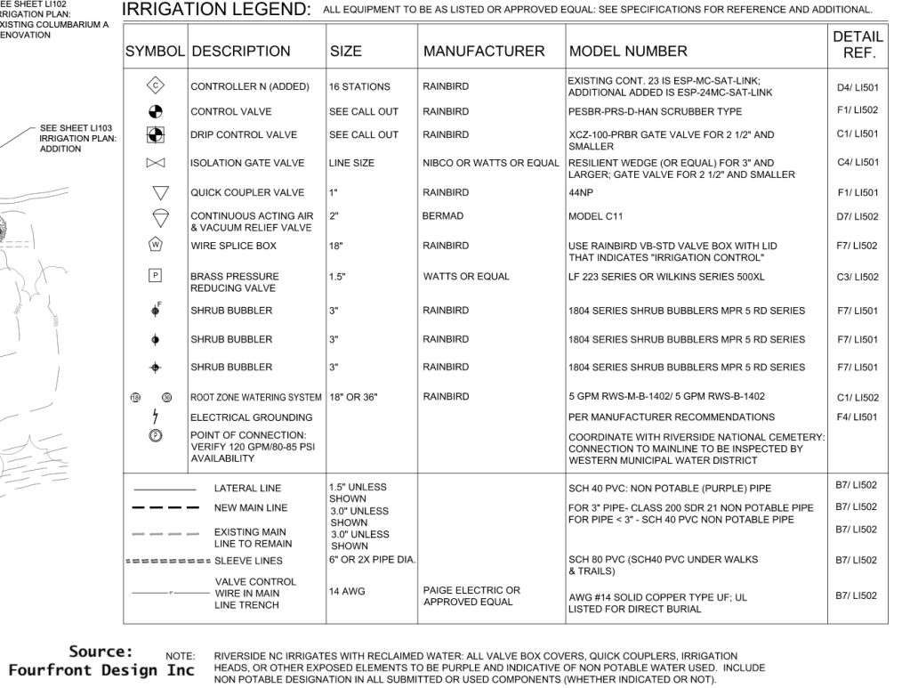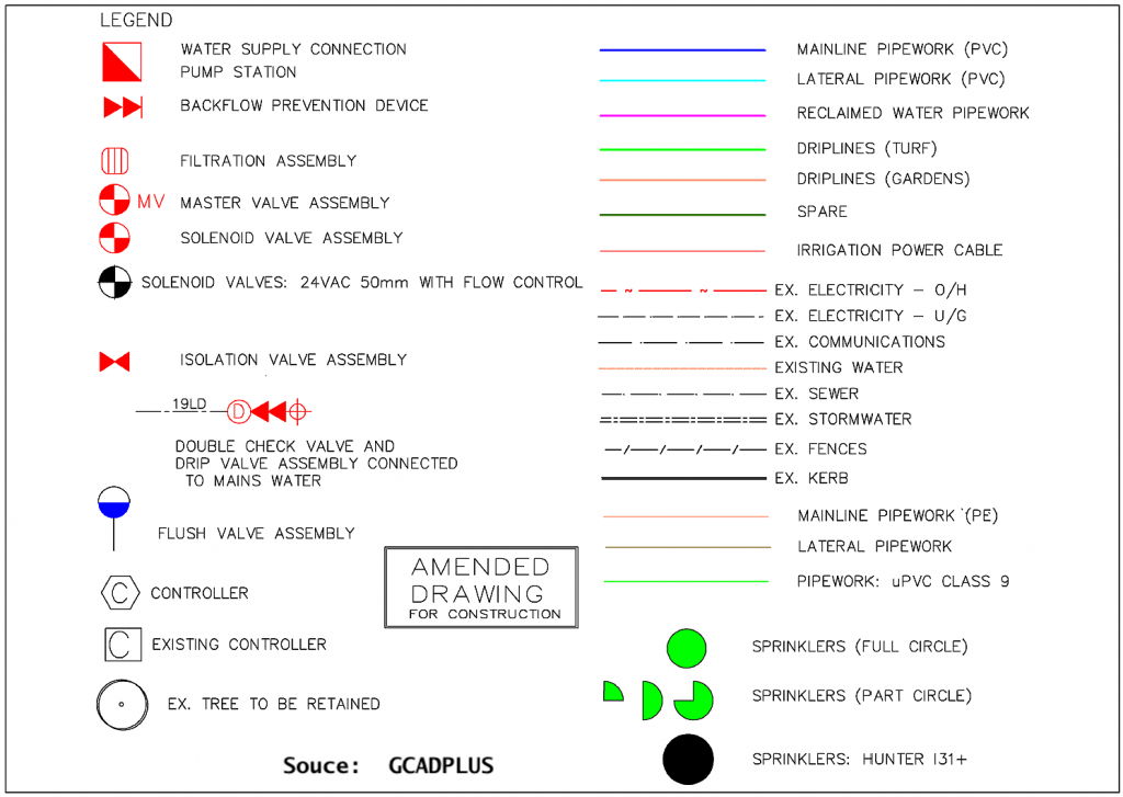 That is about all, lets take a look at some legends pulled from old plans I had laying around or found online . Like we mentioned, they are all different, get used to it. Dont worry about the appearance of the symbol, understand why its there. Look through the myriad of symbols, see if you recognize the parts we just discussed. And try to figure out some consistent ones you can copy to draw an irrigation plan of your own.