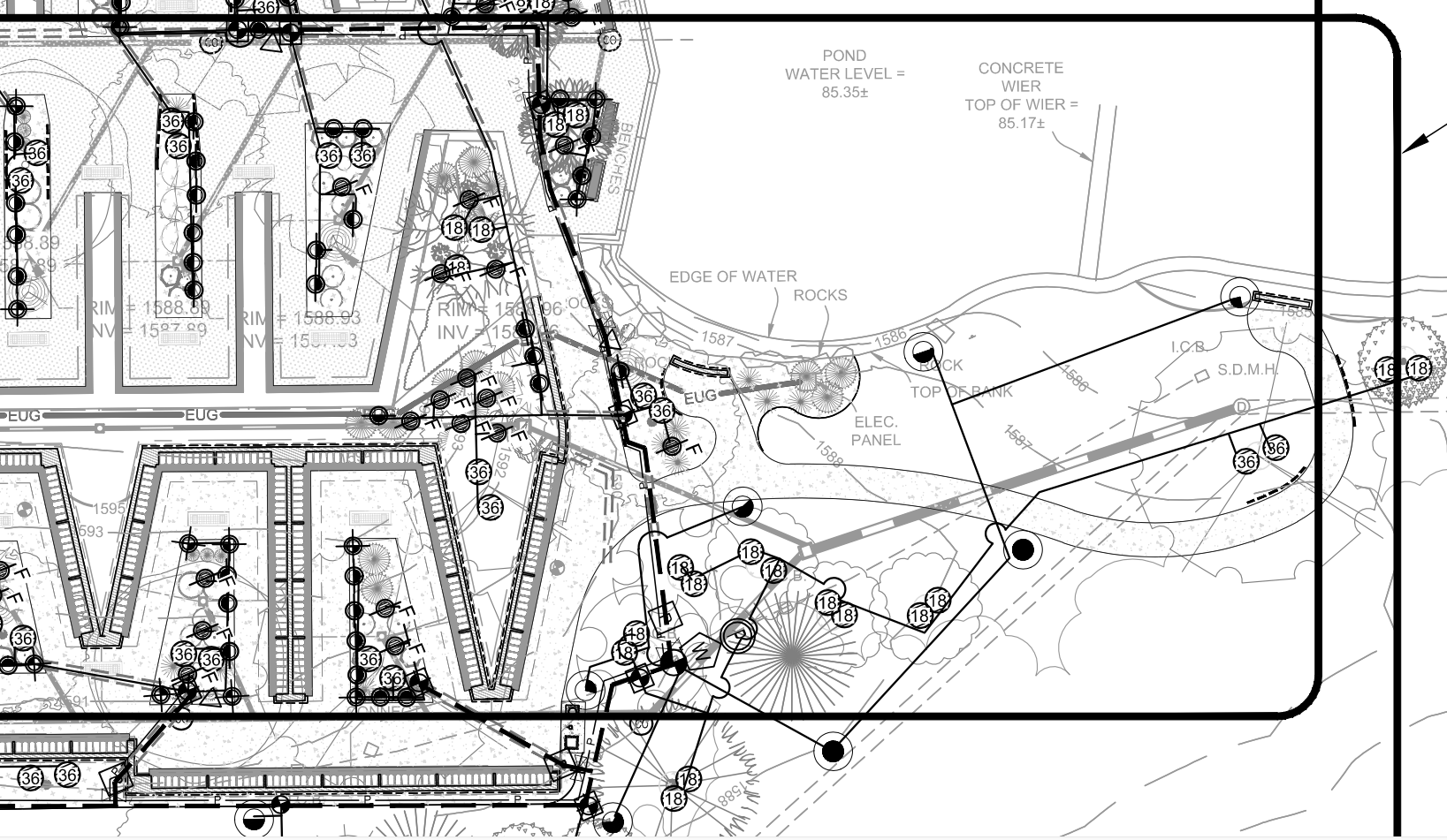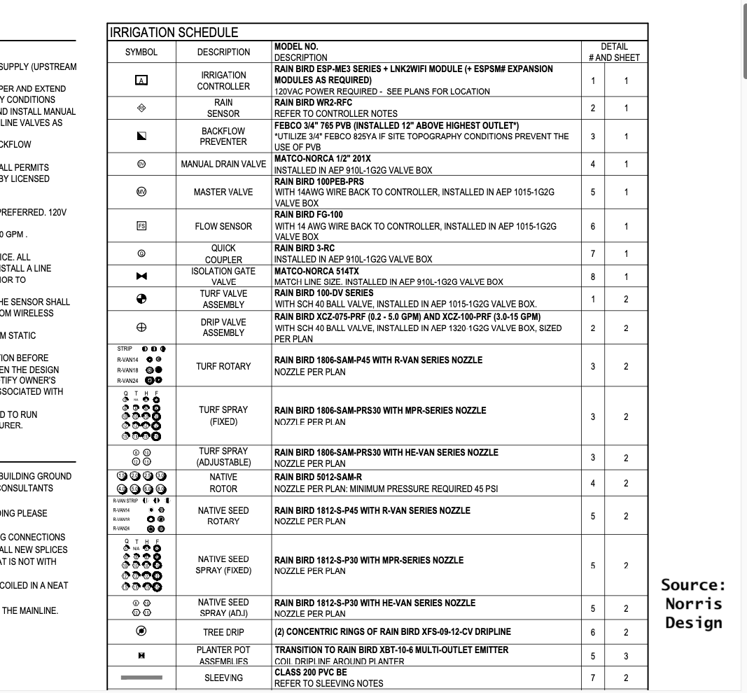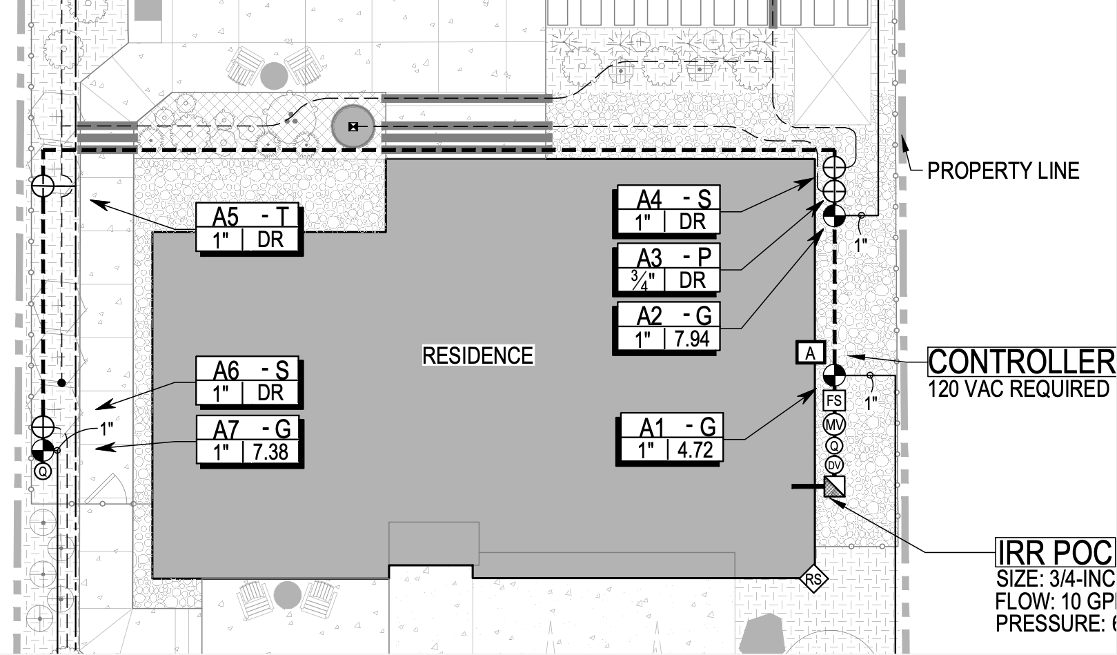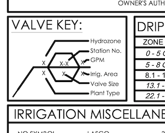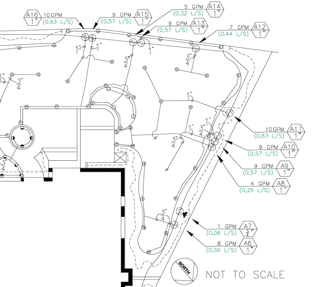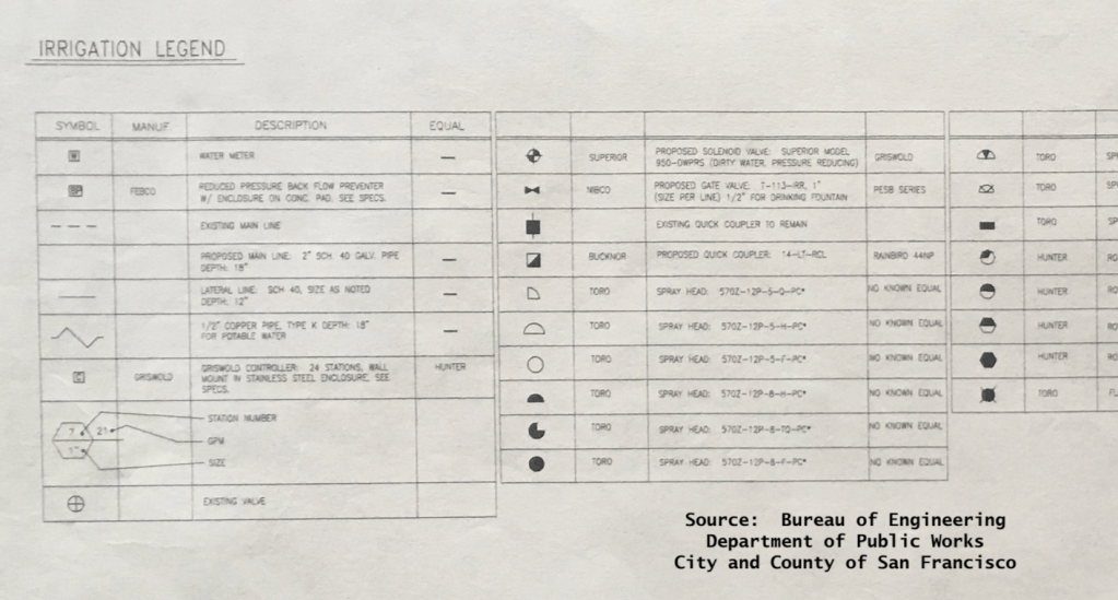 So let’s say you come upon a plan, and want to see what the water is doing and if your plants are gonna get watered. Or, you are a new designer or architect, and want to specialize in irrigation. Or, you are the laborer or gardener in the trenches, and want to see what sprinkler head goes where, where to grade the soil with the kubota, or how deep to bury the line and so on. What does the plan say?! Putting aside the variation and myriadical diversity of symbols, theres basic commonalities and features involved no matter who drawn it. So first, some basics, in case you have absolutely no idea…
