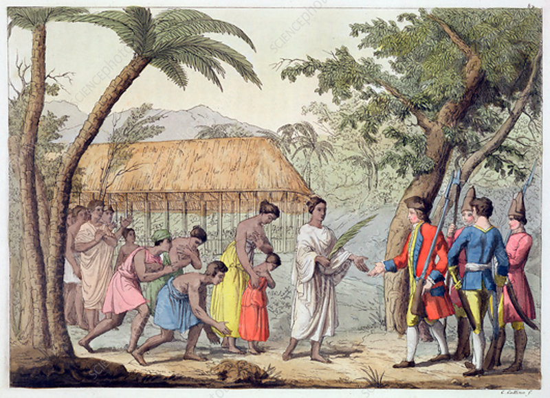 Captain Samuel Wallis being received by Queen Oberea on the Island of Tahiti, 1767 (19th century). Scene from Samuel Wallis’s voyage of circumnavigation in HMS ‘Dolphin’, undertaken from 1766-1768. Wallis is believed to have been the first European to visit Tahiti, which he sighted on 18th June 1767.ScreenshotThe Wardian case was a portable airtight greenhouse developed by Nathaniel Bagshaw Ward to protect live plant material during transportation