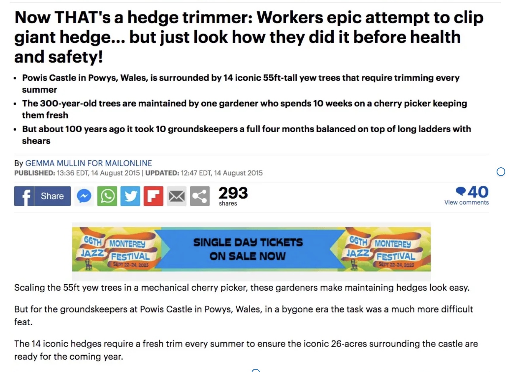 In the beginning we contrast the more sedentary farming communities with that of the hunter gatherer. And how a steady stored food supply then led to hierarchy, stratification, specialization, city states kingdoms nations and monuments. Later we talk about the production of grains, feed and livestock, the use of tractors and the modern automobile industry, and end in the garden where we are mowing, weeding, hedging, cutting.