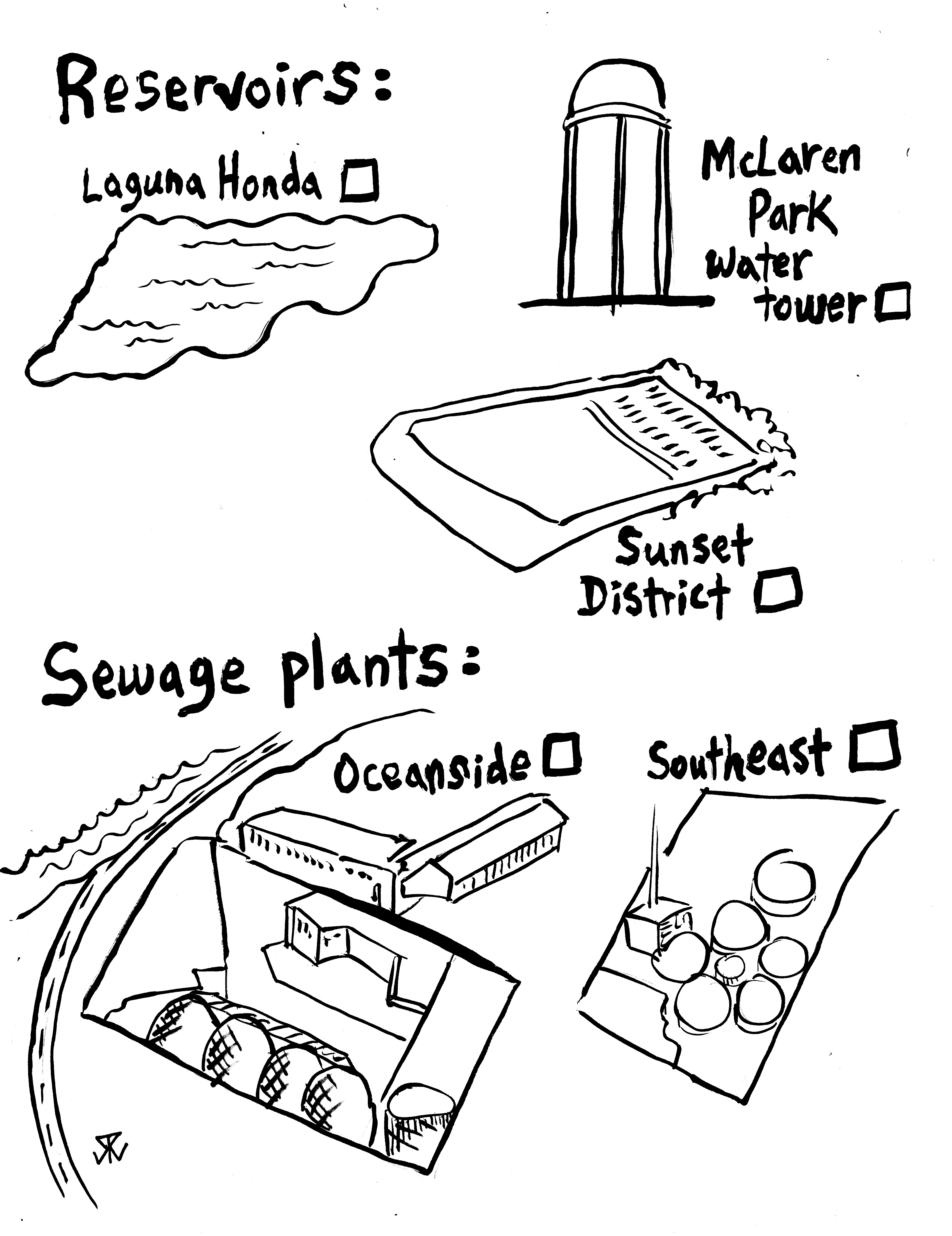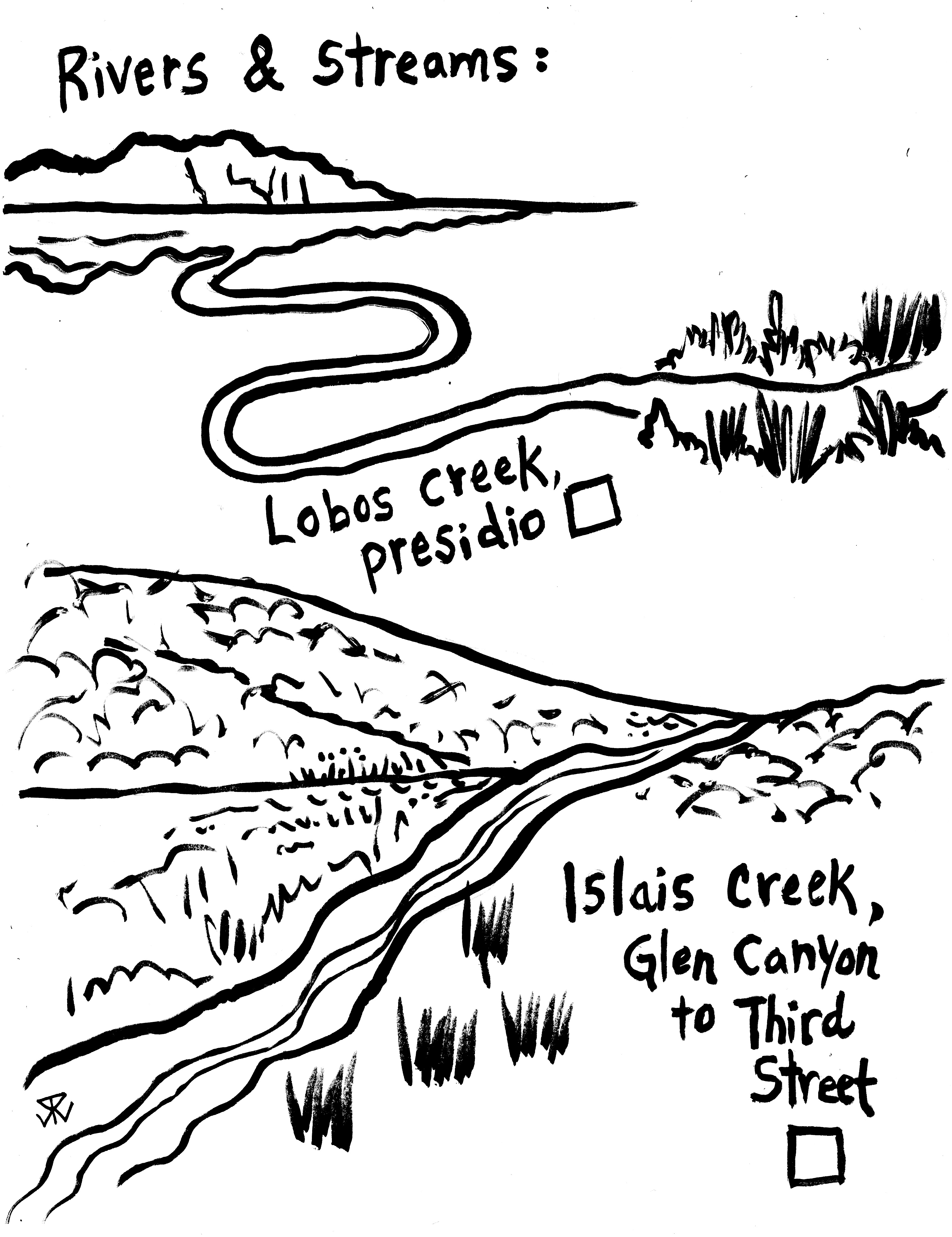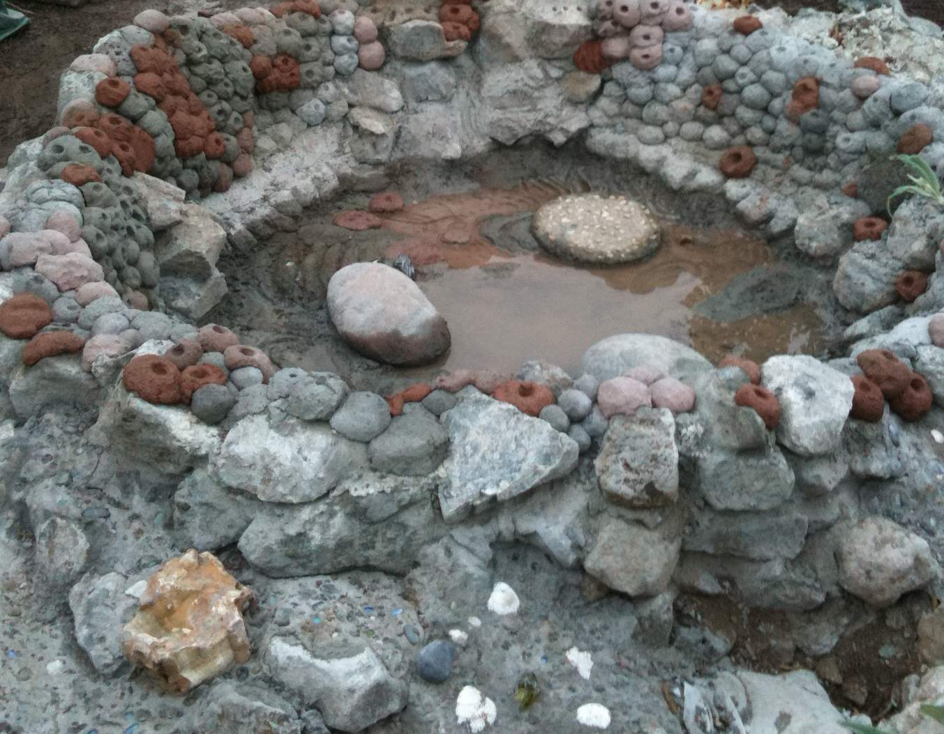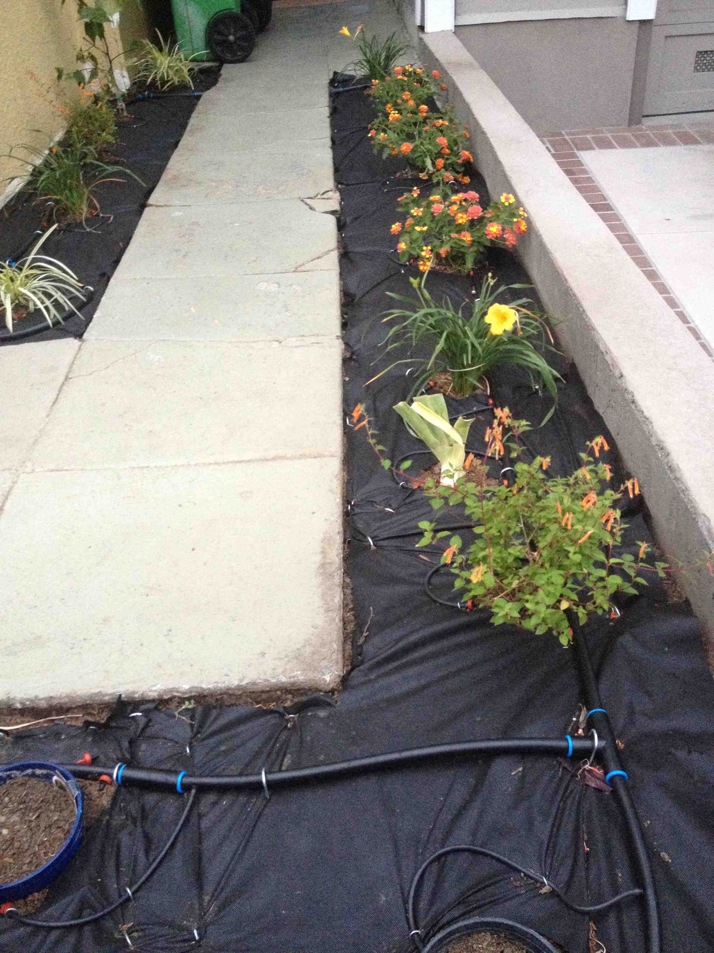 Some California natives: Gum weed, California fuchsia, elderberry and rush. Plus a Felicia for blue flowers. They have found the groundwater that is eight inches below the surface.