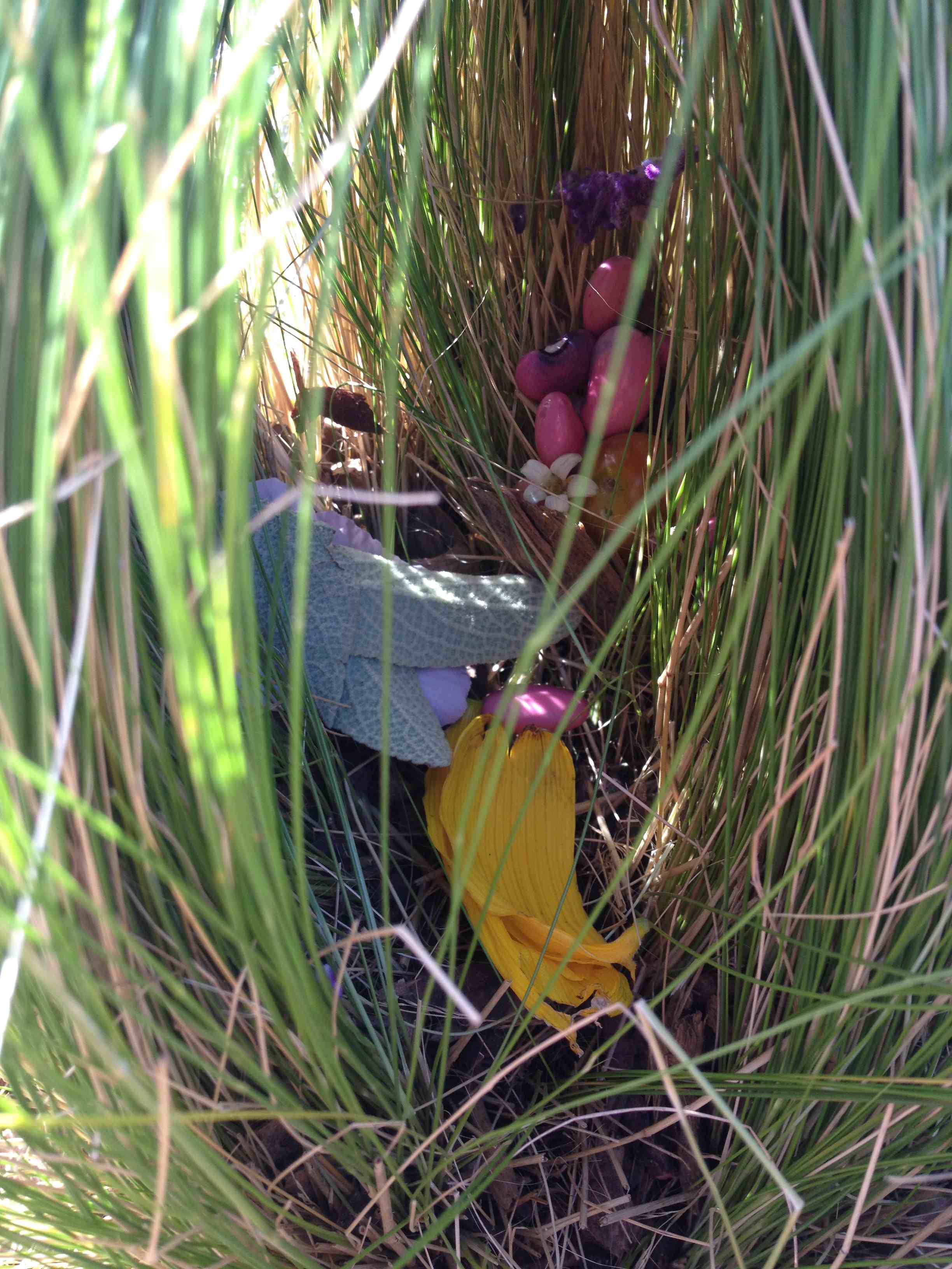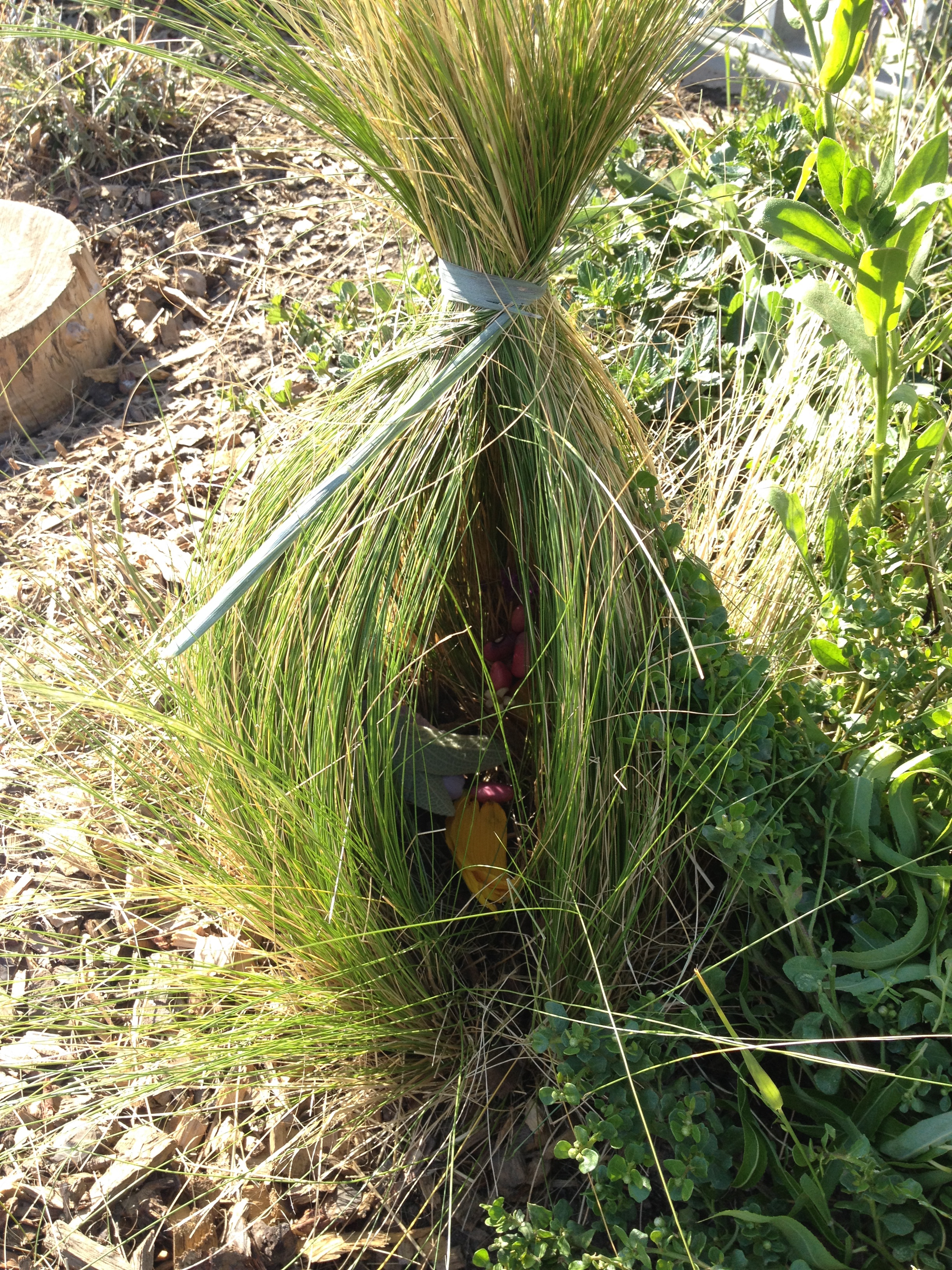 This is a fairy’s house built inside the feather grass lodge.