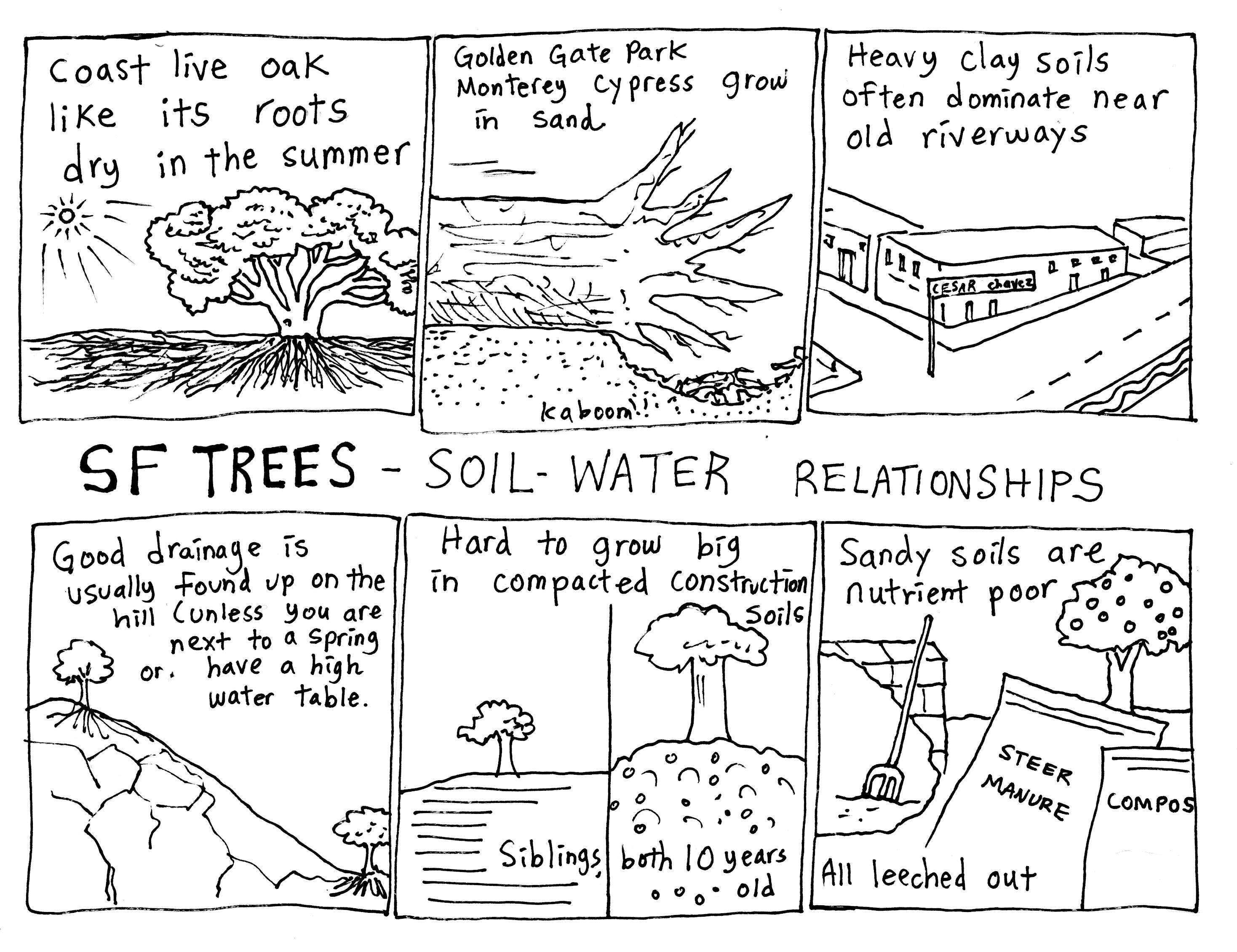 As part of our Tree Care class we teach a smattering of things for students to look out for when trying to identify a tree. The form from a distance, the bark, the leaves, and so on. Learning your trees around the neighborhood is one of the most fun things you can do since they are massive dynamic beings always growing and changing. Part of the goal of the class is for students to then take the certified arborist exam with the International Society of Arborticulture, and pass the test. Here in central California, the list they test from is as follows, extracted from the wcisa.net website: