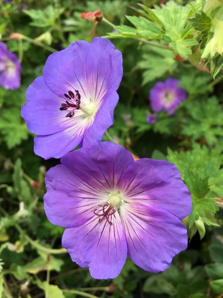 blue bells, columbines, delphiniums, coneflowers and poppies